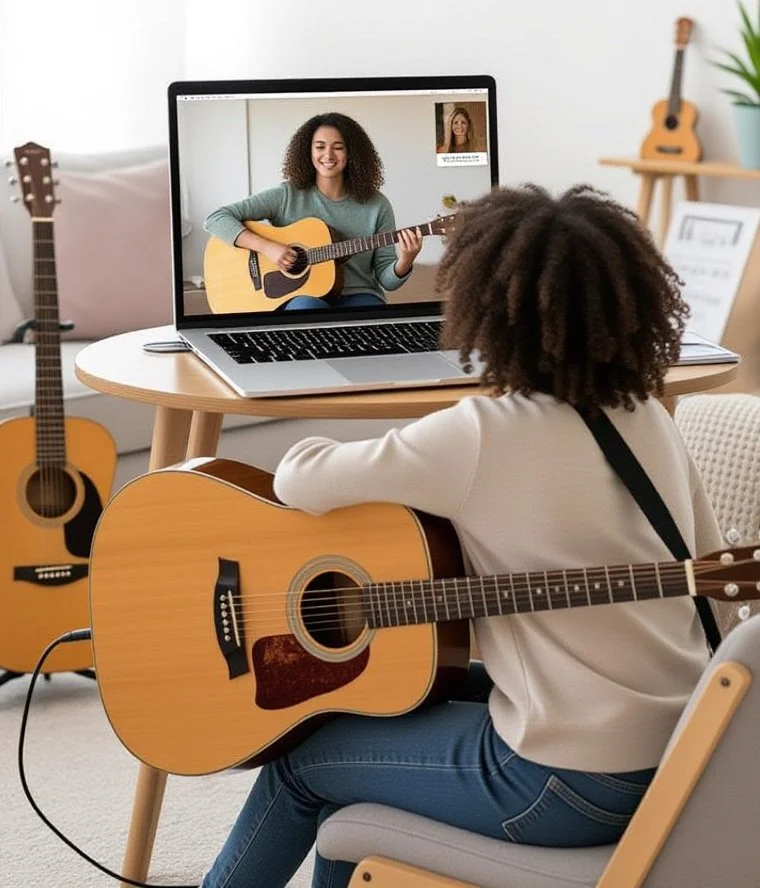 Forget time-consuming commutes and enjoy your guitar lesson in the comfort of your own home!